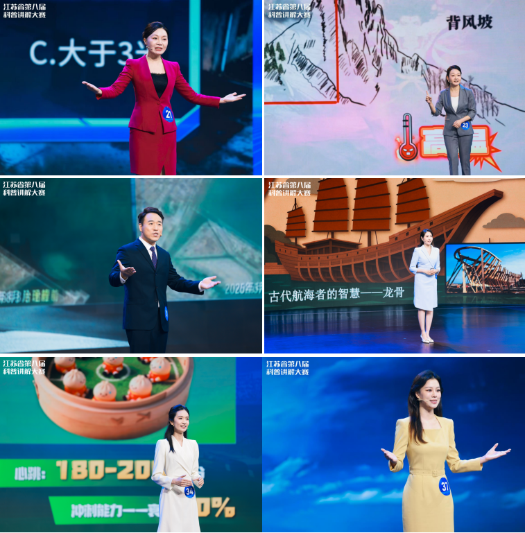 江苏省科普讲解大赛自2018年起连续举办,本届大赛较往年规模更大、级别更高、竞争也更加激烈。大赛由江苏省科学技术协会、中共江苏省委宣传部、江苏省科学技术厅、共青团江苏省委员会、江苏省广播电视总台联合主办,江苏省科普场馆协会承办。赛事采用“线上预赛+线下决赛”模式,吸引了来自全省各领域的133名选手参与初赛,最终39名选手晋级决赛。决赛环节为选手现场自主命题科普讲解,经评委综合打分,共评出一等奖3名、二等奖6名、三等奖12名。中国工程院院士、著名雷达专家贲德及主办单位相关领导为获奖选手颁发荣誉证书。